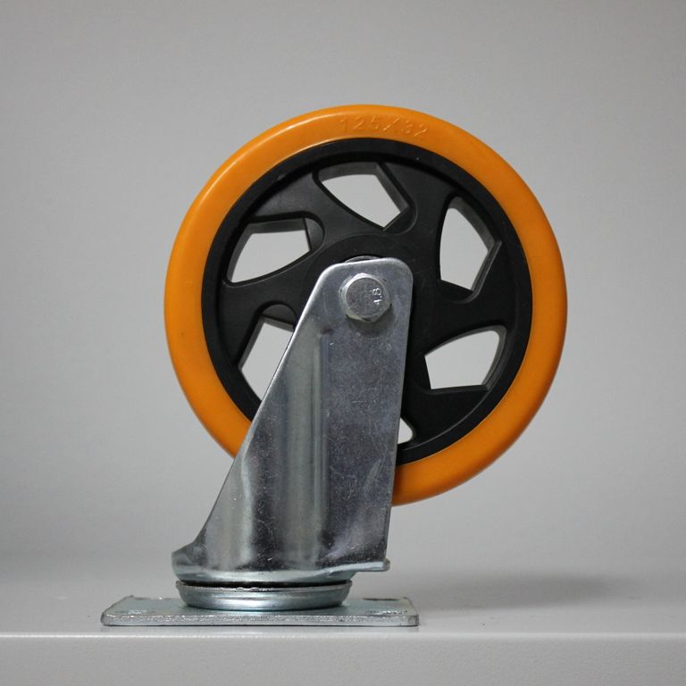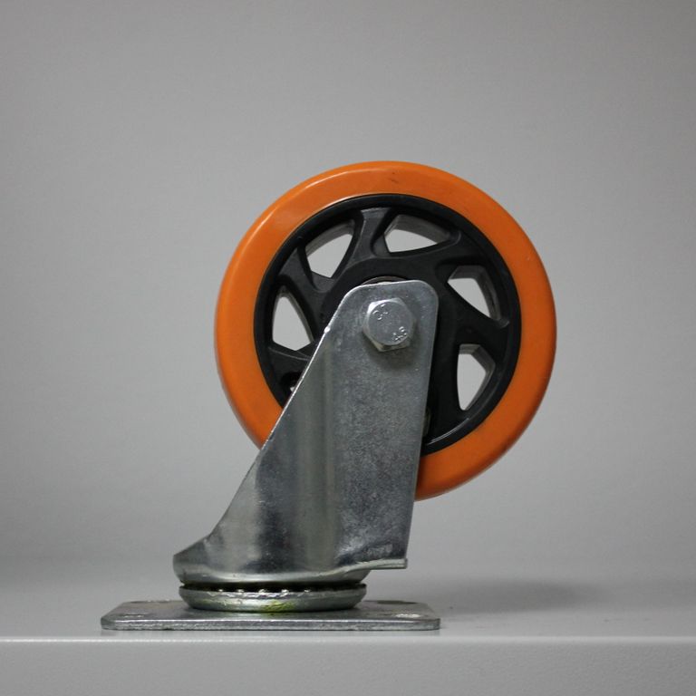 Колеса для тележек такого типа применяют для работы как внутри, так и вне помещений, на неровных поверхностях.